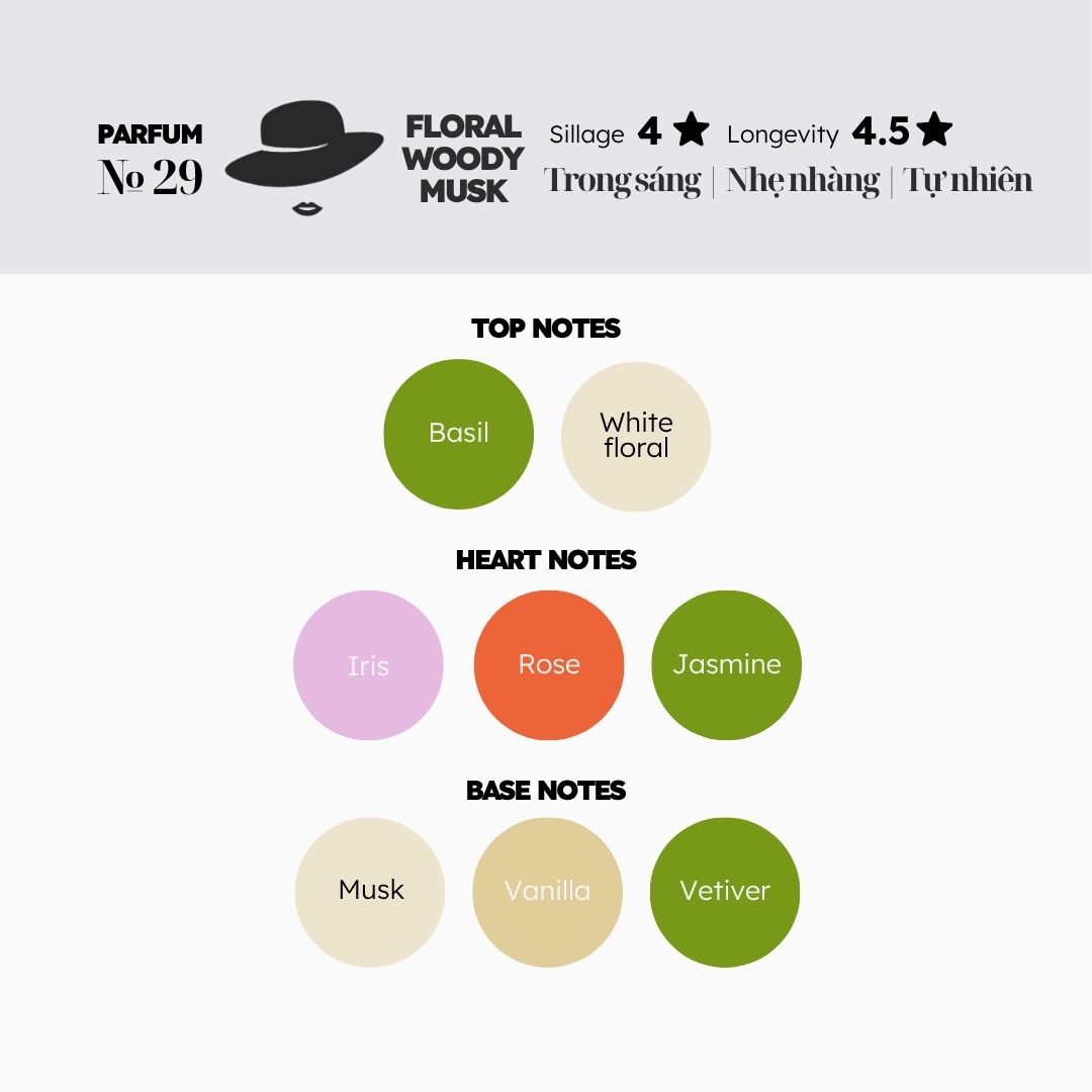 Nếu bạn là một quý cô yêu thích sự tinh tế trong từng note hương, thì № 29 chắc chắn sẽ là món phụ kiện không thể thiếu của bạn.